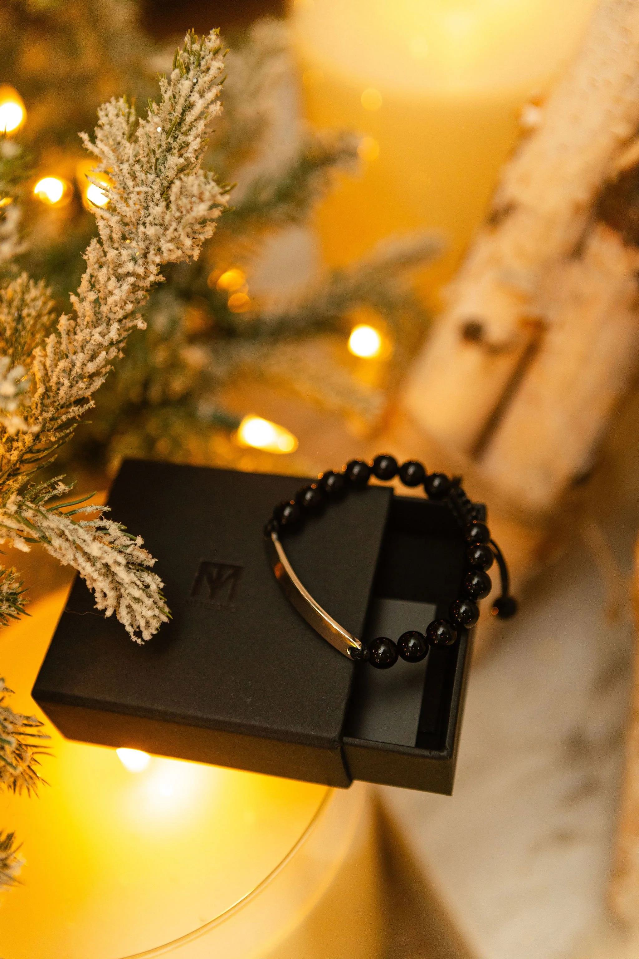 Grounded in quiet strength and elegant minimalism, this stretch bracelet features smooth black onyx beads — a timeless symbol of protection, transformation, and willpower. Anchored by a sleek stainless-steel plate and made to move with you, it's waterproof, tarnish-free, and unisex. Give it as a thoughtful holiday gift or tuck it under the tree for someone who embodies quiet confidence and inner resilience.